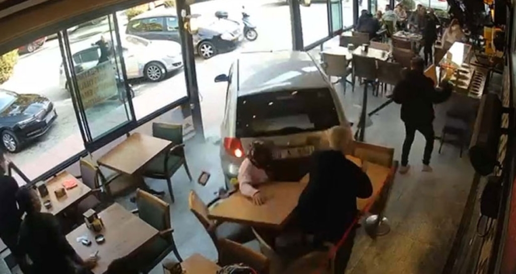 84 Yaşındaki İbrahim (İ) yönetimindeki 09 K 9541 Plakalı otomobil geri manevra sırasında direksiyon hakimiyetini kaybetmesi sonucunda yol kenarında müşteri dolu kafeye daldı.