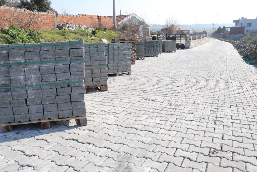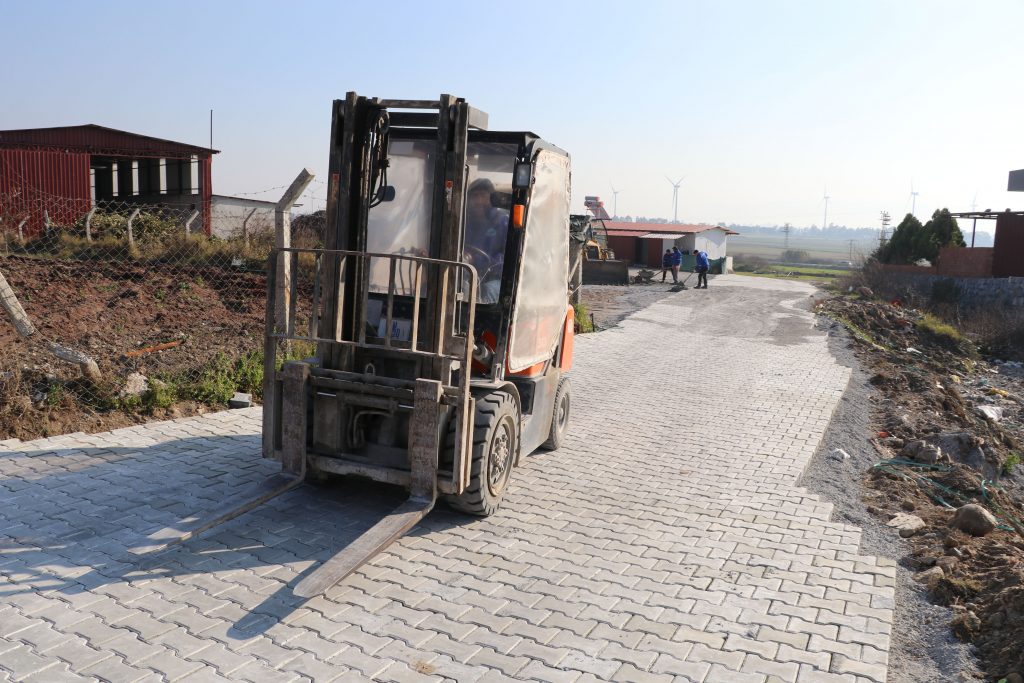 haldeki bu yolun çok kısa bir sürede yaklaşık 1400 m2 kilit parke taşı kısmını döşediler. Akçakonak