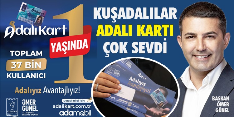 Vatandaş memnuniyeti odaklı çalışmalarıyla kent sakinlerinin takdirini kazanan Kuşadası Belediye Başkanı Ömer Günel tarafından kentte ikamet eden kişiler için yaşama geçirilen Adalı Kart uygulaması 1 yılı geride bıraktı. Bu süre zarfında isme özel hazırlanarak Kuşadalılara ulaştırılan Adalı Kart, 37 bin aktif kullanıcıya ulaştı. Alkol ve tütün ürünleri hariç yüzde 30 indirim imkanı sağlayan Arya Turistik Tesisleri ile yerel tarımsal üretimi desteklemek amacıyla faaliyet gösteren Halk AdaMarket mağazasında toplam 441 bin 768 kez kullanılan Adalı Kart’ın sunduğu indirim ve avantajlardan yararlanan Kuşadalılar, uygulamadan son derece memnun.