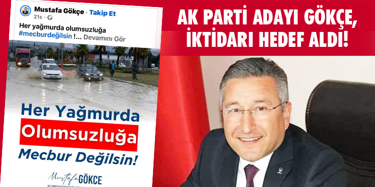 AK Parti Kuşadası Belediye Başkan Adayı Mustafa Gökçe yine şaşırtmadı! Bu kez bayrağını taşıdığı iktidara sert eleştrilierdi bulundu… ‘Her yağmurda olumsuzluğa #mecburdeğilsin!’ paylaşımı yaparak Kuşadası halkına seslenen Gökçe’nin Karayolları’nın sorumluluğu altında olan bir konuyu Başkan Günel’e devşirmeye çalışması pes dedirtti! Karayolları demek devletin yani dolayısıyla hükümetin politikaları ile yol izleyen kurum demek. Yapılan bu paylaşımla bayrağını taşıdığı iktidarı hedef alıyor ve bunun farkında bile olamayacak kadar akıl tutulması yaşıyor! Ama Kuşadası’na yönetmeye talip…