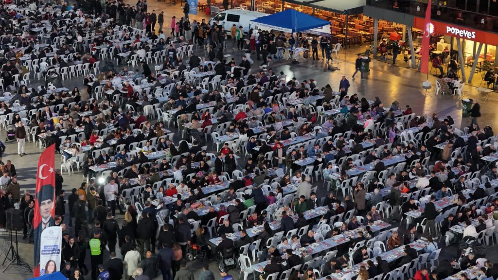 Aydın Büyükşehir Belediyesi, ramazan ayının gelmesiyle birlikte her yıl olduğu gibi bu yıl da Aydın’ın farklı noktalarında iftar programları düzenlemeye başladı. Efeler Atatürk Kent Meydanı’nda düzenlenen 5 bin kişilik iftara katılan Aydın Büyükşehir Belediye Başkanı Özlem Çerçioğlu; ramazan ayının bolluk, bereket ve barış getirmesi temennisinde bulundu. Atatürk Kent Meydanı’ndaki iftarda Çerçioğlu’na Cumhuriyet Halk Partisi (CHP) Aydın İl Başkanı Hikmet Saatçı ile CHP Efeler Belediye başkan adayı Anıl Yetişkin de eşlik etti.