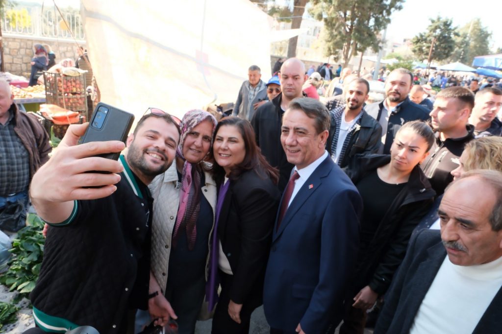 Aydın Büyükşehir Belediye Başkanı Özlem Çerçioğlu, Cumhuriyet Halk Partisi (CHP) Efeler Belediye başkan adayı Anıl Yetişkin ile birlikte Efeler Cumartesi Pazarı’nda vatandaşlarla bir araya geldi. Kendilerine desteklerinin önümüzdeki dönemde de devam edeceğini söyleyen vatandaşlar, ilçede yapılan ve yapılacak olan yatırım ve hizmetler için Çerçioğlu’na teşekkür etti.