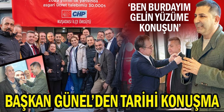 ‘Kuşadası’na dair bugüne dek ağızlarından tek bir proje duymadık’ diyen Başkan Günel, ‘İşleri güçleri bizlere iftira atmak, yalanla, kumpasla bir şeylerin hesabını yapmak. Bugüne kadar Kuşadası için ağızlarından bir tek proje çıkmadı. Oysaki biz isterdik ki bize gelsinler desinler ‘biz böyle bir proje düşündük Kuşadası için’ ama yok. Çünkü dertleri Kuşadası değil. Dertleri kendi hesapları” dedi. Cumhuriyet Halk Partisi olarak ülke genelinde başlatılan iktidar yürüyüşünde Kuşadası olarak koşar adım yol aldıklarını ifade eden Başkan Günel, “Bugüne kadar hiçbir hesabın içinde olmadık halkımızın hesabı dışında. Cumhuriyet Halk Partisi’nin altı ilkesi ışığında iktidar yürüyüşümüz sürüyor. Bu partide çok CHP’li, az CHP’li, eski CHP’li yeni CHP’li yok. Bu çatı altında tek amaç var. O da halkımızın hizmetinde olmak. Ve bu hizmet köprüsü iktidar yolunun ışığıdır. Çok şükür biz Kuşadası’nda başlattığımız hizmet çağının 2. Dönemini yaşıyoruz. Bugüne dek yaptığımız projeler, yatırımlar bu kent için verilen her çaba halkımız nazarında teveccüh ile karşılandı. Ancak biz daha yeni başlıyoruz. Kuşadası’na vizyon projelerimizle hayat vereceğiz” dedi. Başkan Günel son olarak hakkında yalan, iftira ve kumpas üçgeni ile hareket edenlere de ‘hodri meydan’ dedi. Ben buradayım arkadaşlar. Yüreğiniz yetiyorsa gelin yüzüme konuşun. Kendi kendinize kaldığınız ortamlarda boş boş konuşmayın. Ya da bakın ben buradayım, adliye orda varsa bir şey buyurun gidin adli makamlara şikayet edin. Ama artık yeter Kuşadası’na yalanlarınızla zarar vermeyin” dedi.