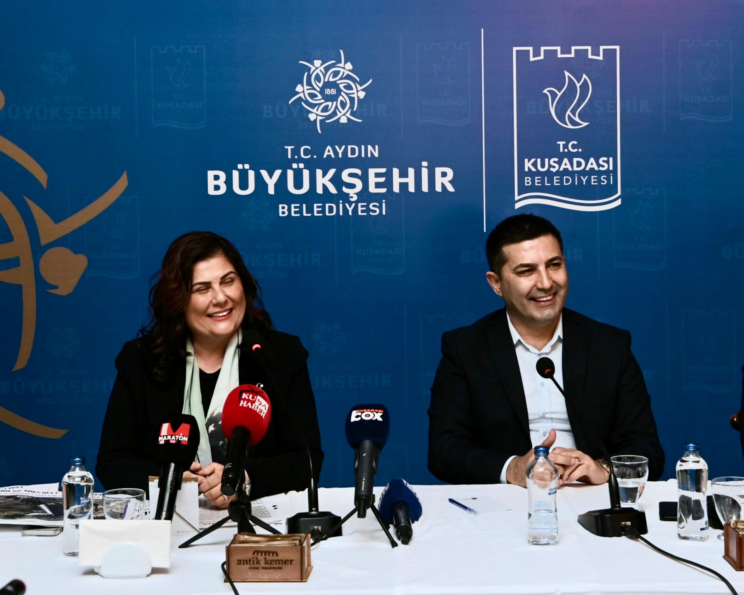 Aydın Büyükşehir Belediye Başkanı Özlem Çerçioğlu ile Kuşadası Belediye Başkanı Ömer Günel, düzenledikleri ortak basın toplantısında, her iki belediye tarafından Kuşadası’nda yaşama geçirilen ve geçirilecek olan hizmetlerle ilgili bilgi verdi. Türkiye’de yaşanan ekonomik kriz nedeniyle belediyelerin yoksullukla mücadele eden kurumlar haline geldiğine dikkat çeken Başkan Özlem Çerçioğlu ve Başkan Ömer Günel, sosyal belediyecilikten ödün vermeyeceklerinin altını çizdi.