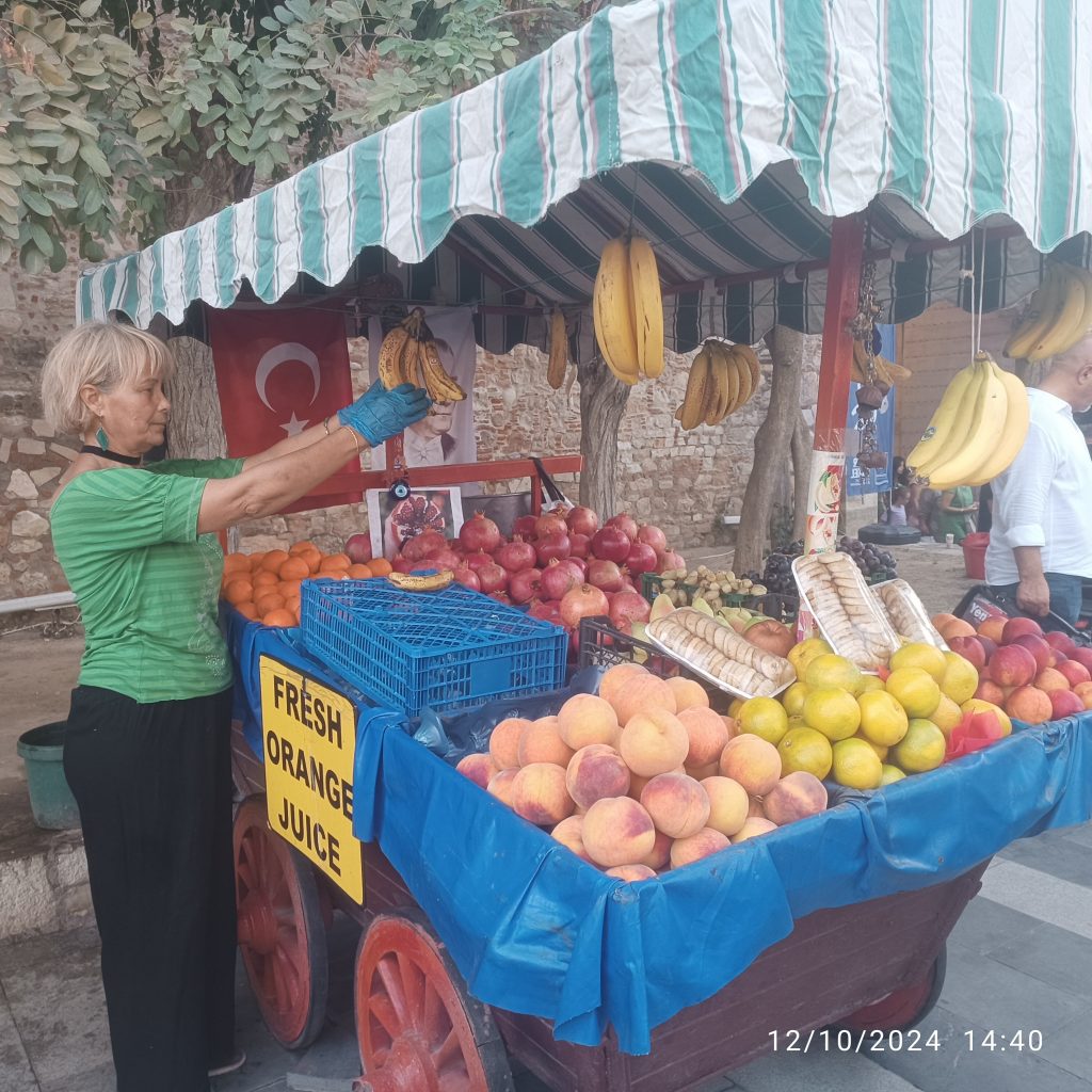 Kuşadası’nın gerçek esnaflarından biriydi rahmetli Halil Köken… Kervansaray’ın önünde yer alan dükkanında her türlü meyveleri eşsiz sunumu ile Kuşadalılar’a tattırarak damaklarda iz bırakmış bir isim Kökenli… Tam 60 yıllık bir mirasın bugün canlı konuğu olduk… Nasılmı? Dedesi Halil Köken’den aile mirası olarak bayrağı devralan babasının ardından şimdi o tezgaha hayat veren Esen Köken hanımın konuğu olarak.