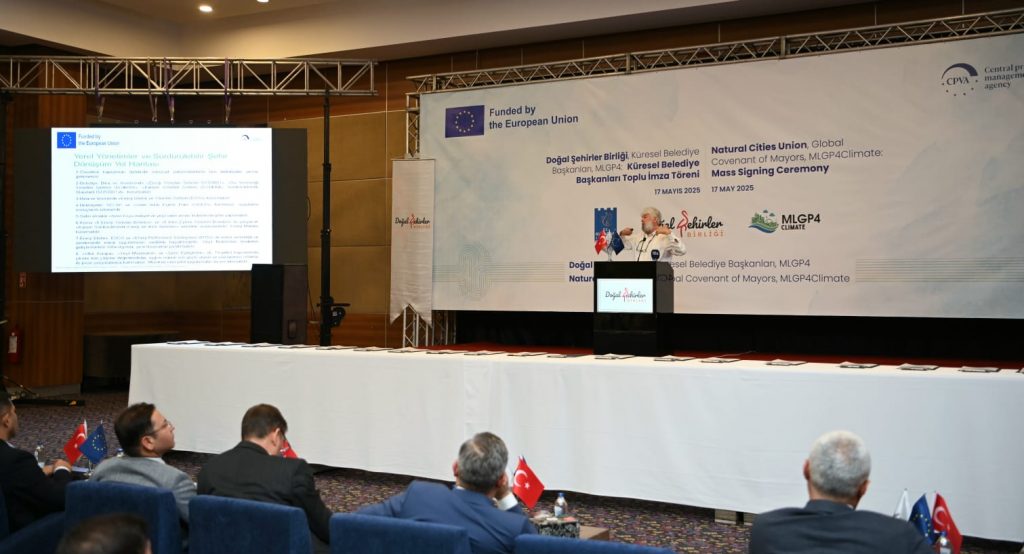 İmza töreninde konuşan Doğal Şehirler Birliği ve Kuşadası Belediye Başkanı Ömer Günel, “Bugün burada, insanlık olarak karşı karşıya olduğumuz en büyük ortak sınavlardan biri için, iklim değişikliğiyle mücadelede kararlı bir irade ortaya koymak üzere bir aradayız. İklim krizi, sadece küresel ölçekte ele alınması gereken bir mesele değil, aynı zamanda yerelden başlayan bir sorumluluk meselesidir. Çünkü çözümün anahtarı, yaşadığımız şehirlerde, mahallelerde, yerel yönetimlerin vizyon ve kararlılığıyla şekillenmektedir. İşte bu yüzden bugün burada toplanmamız çok anlamlı ve önemli. Doğal Şehirler Birliği üyesi belediyelerin Küresel Belediye Başkanları Sözleşmesi’ne hep birlikte imza atmış olması çok önemli. Bu sadece sembolik bir tören değil; ortak irademizin, birlikte hareket etme kararlılığımızın ve doğaya, yaşanabilir kentlere olan bağlılığımızın güçlü bir ifadesidir. Doğal Şehirler Birliği çatısı altında bu adımın atılması, yalnızca Türkiye’de değil, bölgesel ve küresel ölçekte yerel yönetimlerin iklim mücadelesine verdiği önemin altını bir kez daha çizmektedir. Bu adımın bir Avrupa Birliği projesiyle destekleniyor olması da, yerelden küresele uzanan iş birliğinin ve dayanışmanın en somut göstergesidir” diye konuştu.