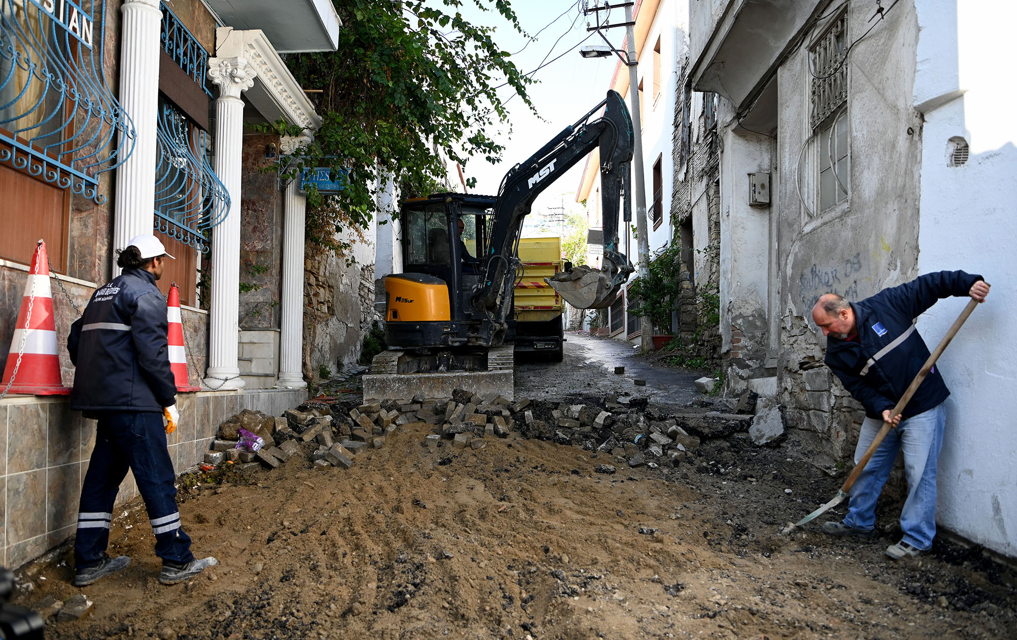 Kuşadası Belediyesi Camiatik Mahallesi’nde bulunan Aslanlar Caddesi’nde, üstyapıyı yenileme çalışmalarına başladı. Fen İşleri Müdürlüğü ekipleri tarafından 900 metrekareyi kapsayan alan, eskiyen zeminin sökülmesinin ardından begonit taşıyla kaplanacak.