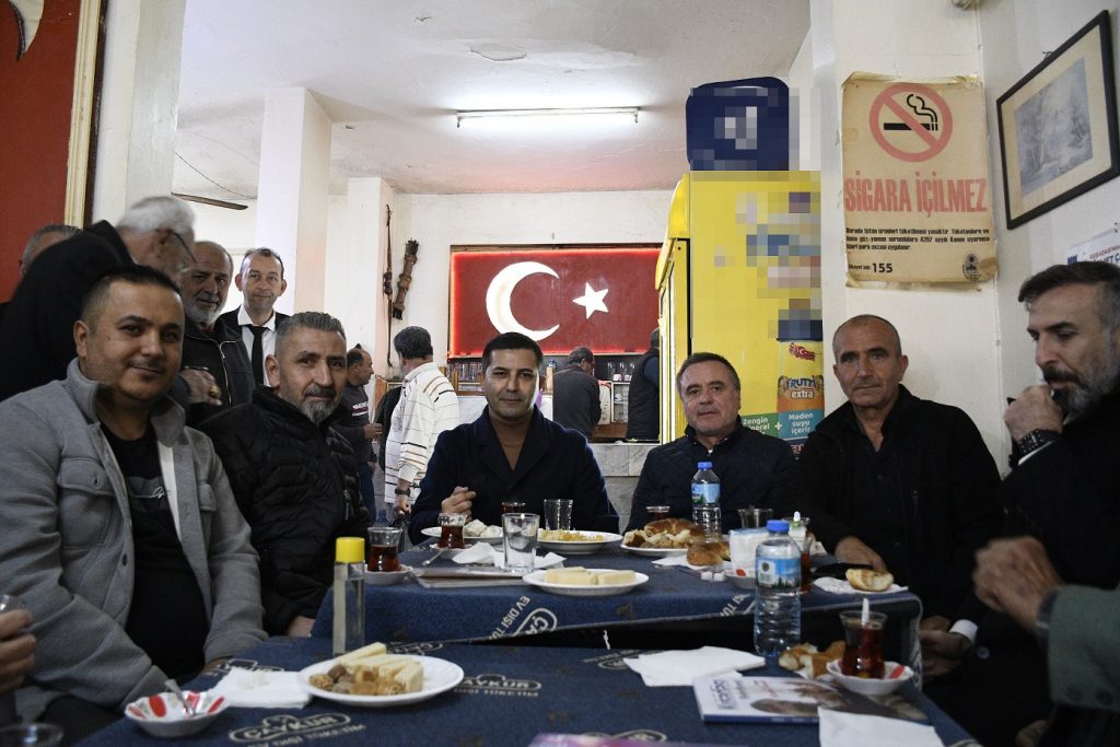 İkiçeşmelik Mahallesi’nde vatandaşlar ile bir araya gelen Kuşadası Belediye Başkanı Ömer Günel, davet üzerine girdiği kahvede İkiçeşmelik Mahallesi Muhtar Azası Kerim Cengiz, “Başkanımız ilettiğimiz dilekçelerin yüzde doksanını çözüme ulaştırdı. İlgileri için çok teşekkür ederiz. Bize sadece İkiçeşmelik Mahallesi’ndeki destek yetmez tüm Kuşadası’nda başkanımız için çalışacağız, zafere ulaşacağız.” ifadelerini kullanarak Başkan Ömer Günel’e destek verdi.
