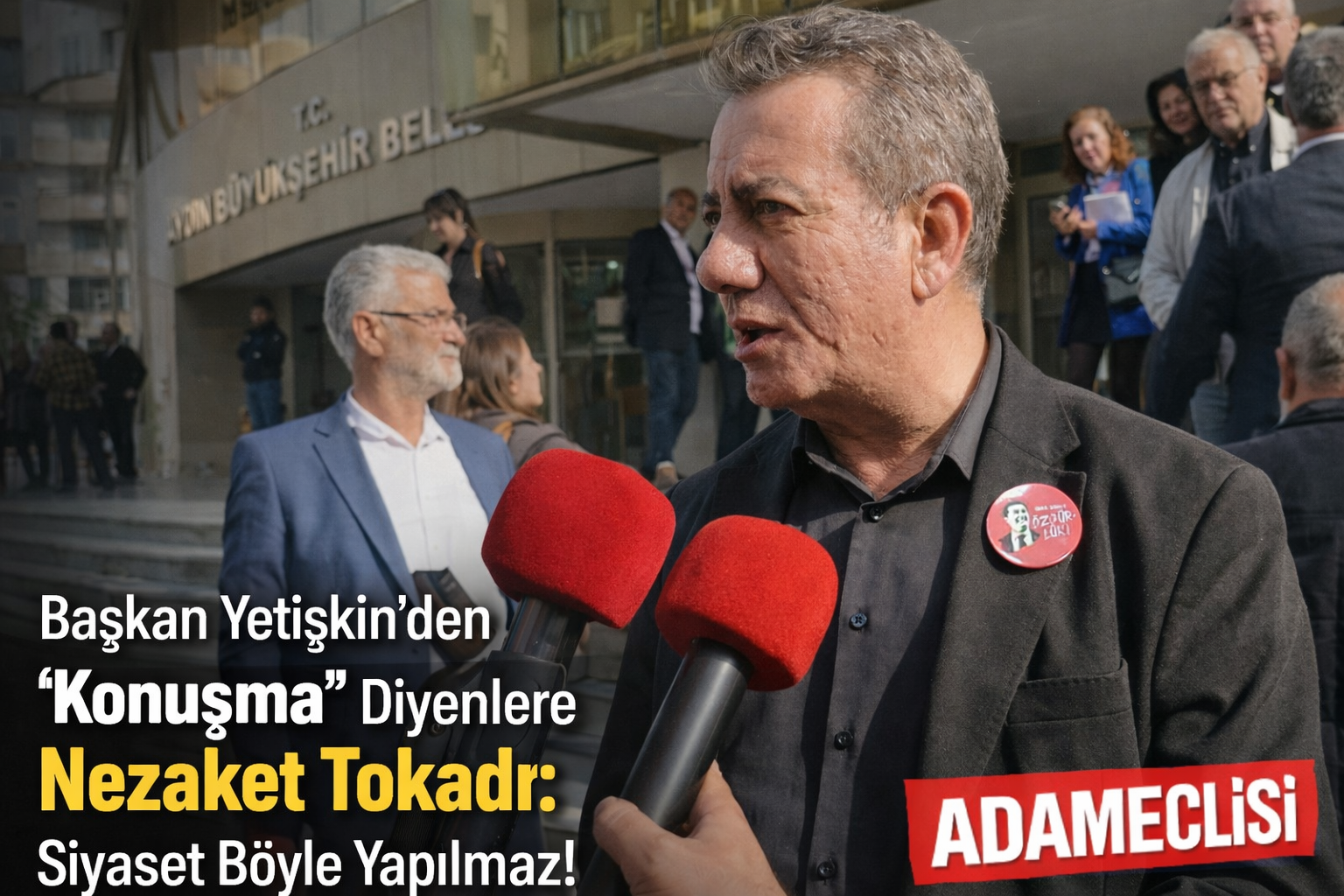Tutuklanan Kuşadası Belediye Başkanı Ömer Günel’e destek için yaka rozetleri taktıklarını hatırlatan Yetişkin, “Meclis Başkan Vekili gündem dışı konuşmamam gerektiğini söylese de kınamamızı ilettik. Biz usul erkan bilen insanlarız; tepkimizin cılız olduğu sanılmasın, nezaketimizden taviz vermiyoruz” açıklamasında bulundu.