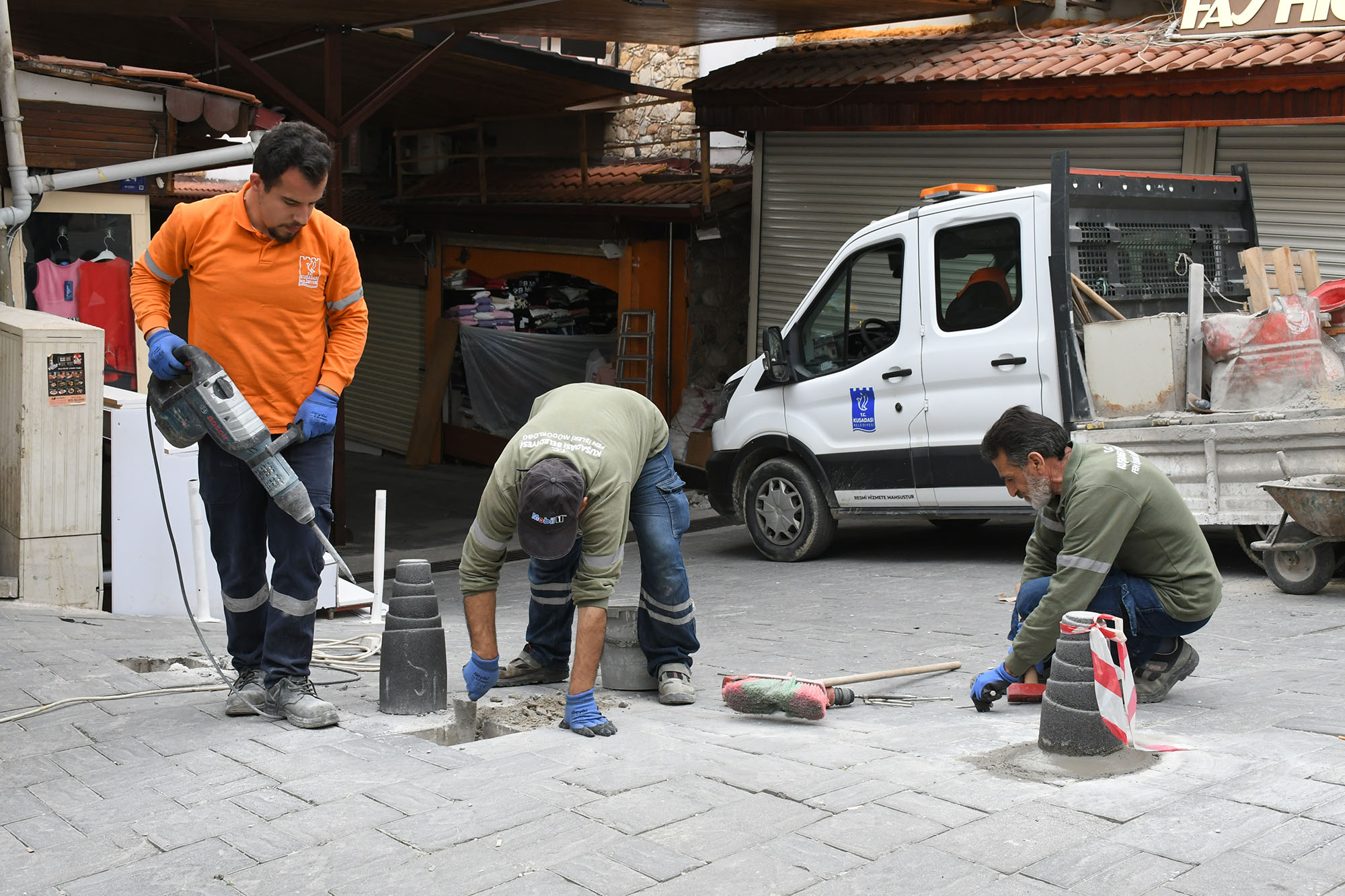 Öte yandan Kuşadası Belediyesi Acil Müdahale ekipleri, kentin en eski çarşılarından Orient Bazaar’ı sezona hazırlamaya başladı. Çarşı girişlerinde araç geçişini engellemek için kullanılan beton dubaları yenileyen ekipler, esnaftan gelen talepler doğrultusunda sorunlara hızla çözüm üretmeyi sürdürüyor.
