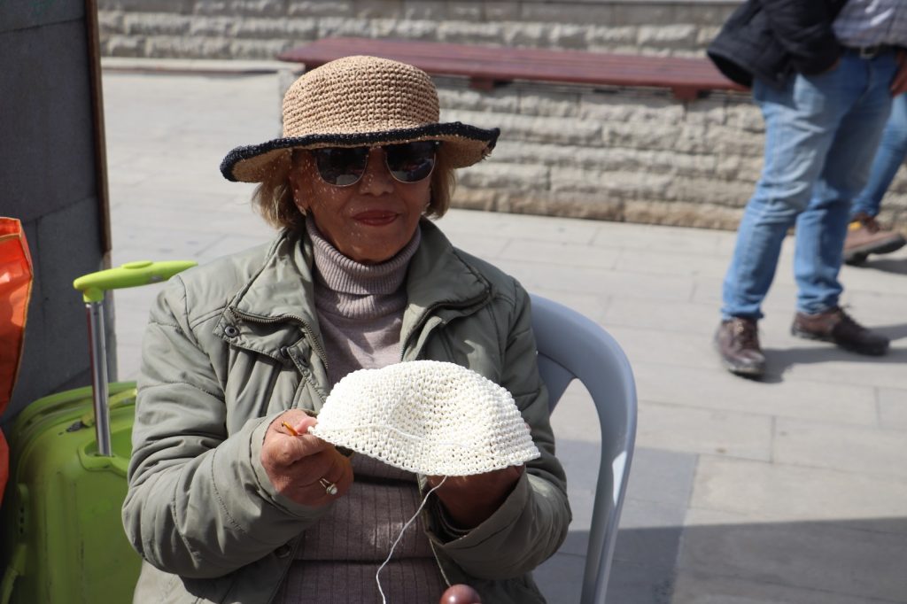 Kuşadalı kadınların ürettikleri el işi, göz nuru ürünleri satışa sunup, ev ekonomisine katkıda