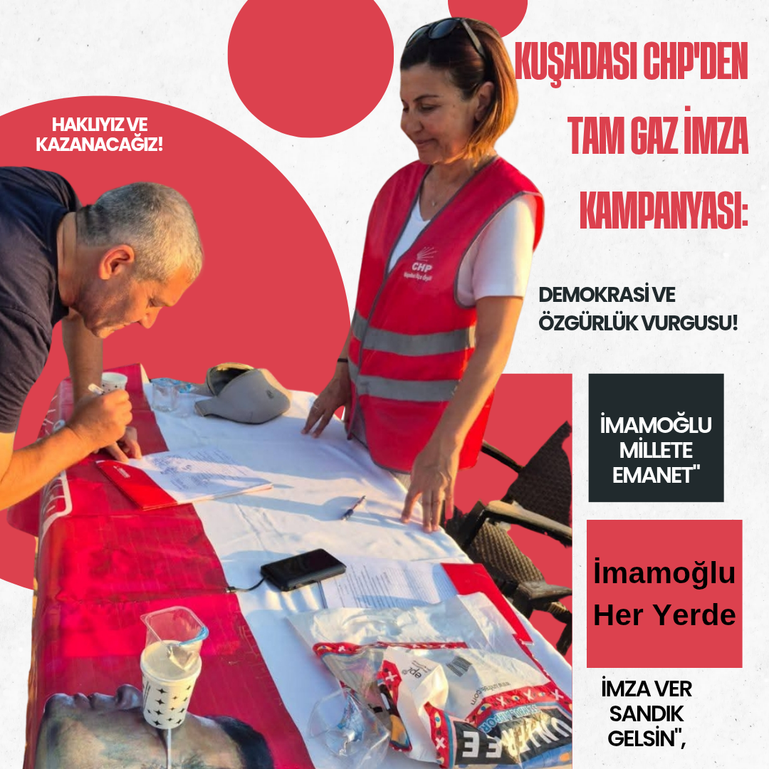 Kuşadası CHP İlçe Örgütü, imza kampanyalarına tüm hızıyla devam ederek, seslerini daha geniş kitlelere ulaştırmayı ve demokratik taleplerini güçlü bir şekilde ifade etmeyi sürdürecek.