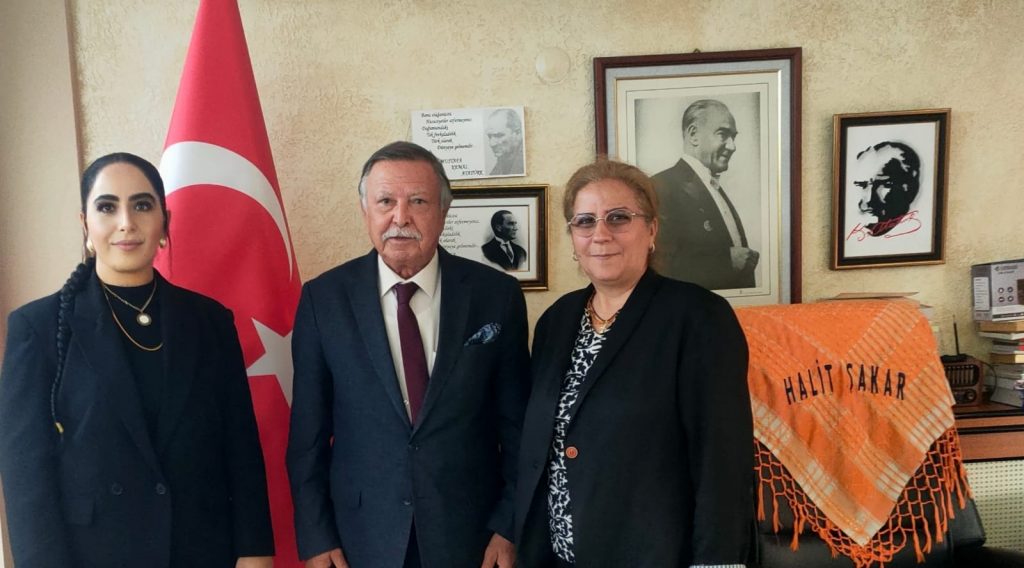 Kuşadası Şoförler ve Otomobilciler Odası Başkan Adayı Ufuk Turan ile “Kuşadası’nın Asenası” olarak anılan Tuğçe Alev, Esnaf ve Sanatkârlar Kredi ve Kefalet Kooperatifi Başkanı Halit Şakar’ı ziyaret etti.