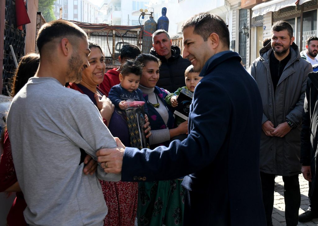 Sokak’ta da büyük bir coşkuyla karşılandı. Kuşadası Romanlar Derneğini ziyaret eden Başkan Ömer