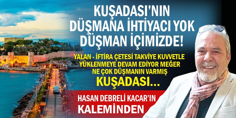 Gittiği yere uyum sağlamak konusunda uzman bir isim ‘Sana dün karşıdan baktım güzel (İstanbul) Kuşadası şarkısı’ eşliğinde Uzo’nun da çarpmasıyla sıralamış yalanı, iftirayı… Kuşadası’nda yaşayıp da şu güzelim kente ihanet etme yarışına giren akıl tutulması yaşayanlardan başka Kuşadası’nın düşmana ihtiyacı var mı ki? İçimizdeki düşman kontenjanımız hınca hınç dolu zaten… Üstelik halkın iradesini yok sayacak kadarda alçakça saldırıyorlar…