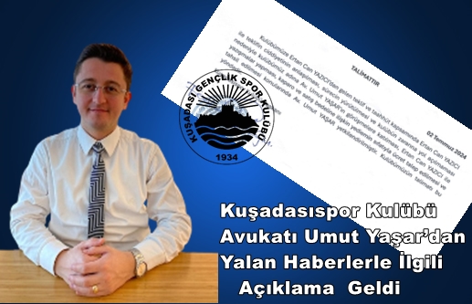 Konuyla ilgili çıkan haberlerin gerçekleri yansıtmadığının altını çizen Avukat Umut Yaşar, Kuşadasıspor kulübünün avukatıyım. Kuşadasıspor kulübü yönetiminin devredilmesi ve borçlarının ödenmesi konularında Kuşadasıspor tarafından yöneticilerinin daveti ve talimatı üzerine, kulüp yönetimini devralmayı taahhüt eden Ertan Can Yazıcı ile yapılan görüşmelere katıldım.