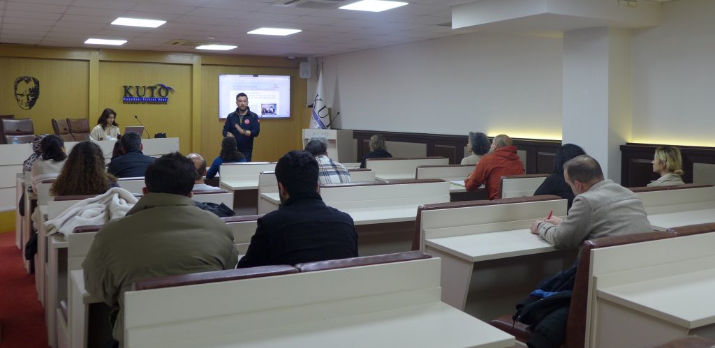 Aydın İl Sağlık Müdürlüğü ve Kuşadası Ticaret Odası işbirliğinde gerçekleşen eğitim, Sağlık Hizmetleri Başkanlığı Acil Sağlık Hizmetleri Birimi Eğitmenleri Aysel Kural ve Gökhan Ceylan tarafından verildi.