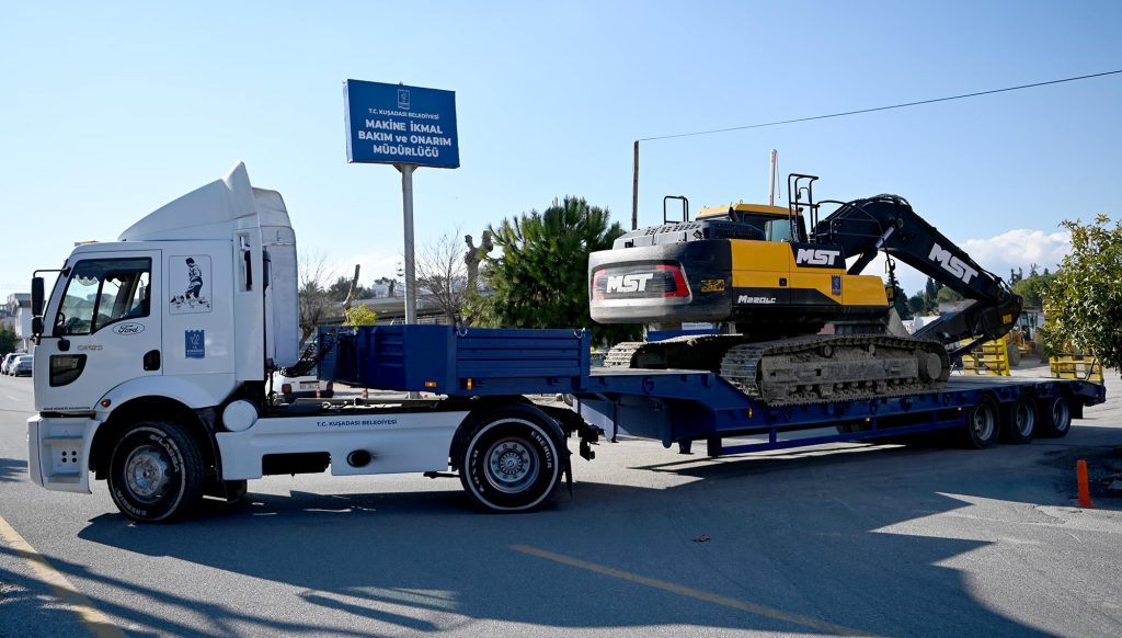 Kuşadası Belediyesi, kentin tüm mahallelerine eşit ve kaliteli hizmet götürmek amacıyla günün 24 saati çalışıyor. Yol yapım, bakım ve onarım işlerinin yanı sıra kente yeni yeşil alan ve parklar kazandırmak için de yoğun çaba sarf eden ekipler çoğu zaman silindir, ekskavatör, greyder ve buldozer gibi iş makinelerine de ihtiyaç duyuyor. Trafiğe çıkışı yasak olan bu iş makinelerinin de bir yerden başka bir yere nakli için kiralanan çekicilerin yıllık maliyetleri, Kuşadası Belediyesi’nin bütçesinde önemli bir kalem tutuyor.