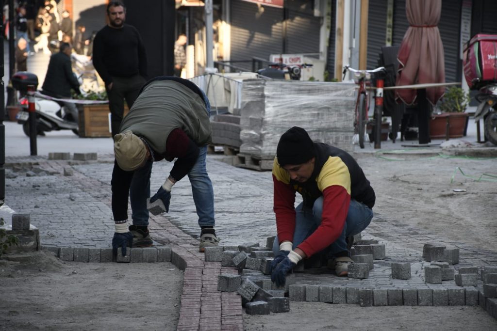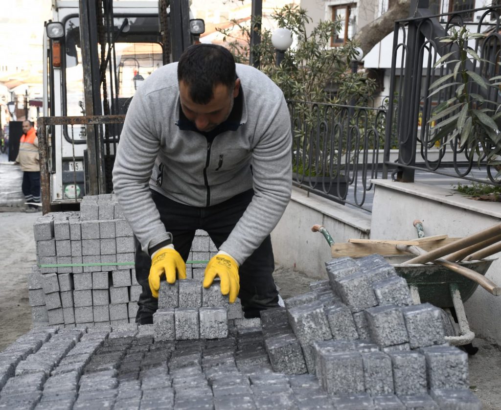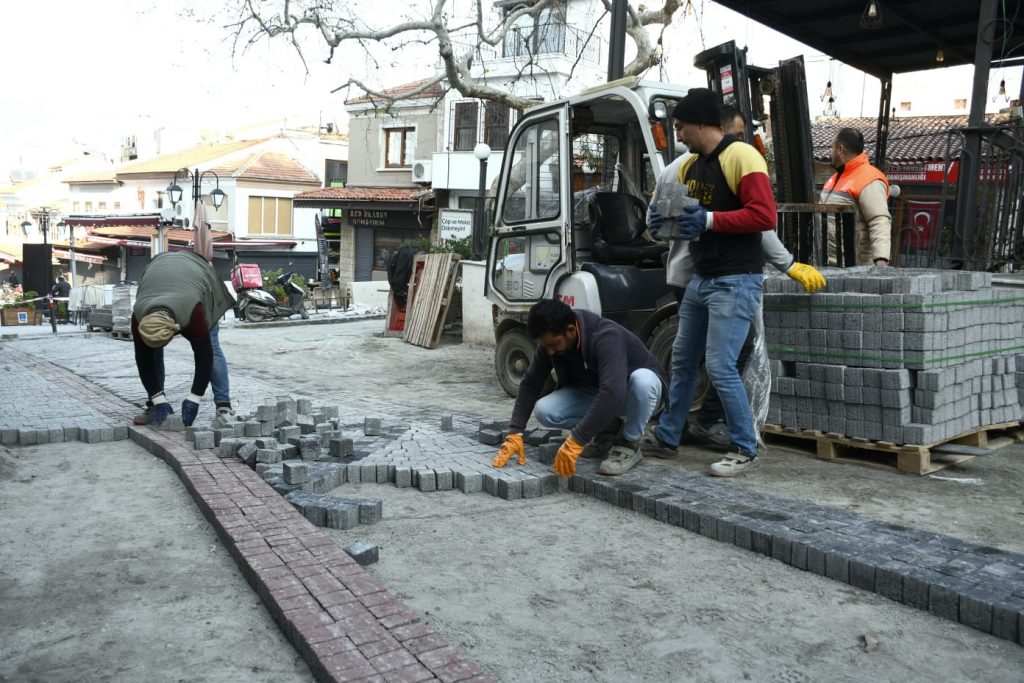 Kuşadası Belediyesi, tarihi Kuşadası evlerinin bulunduğu Yıldırım Caddesi’nde kente yeni bir turizm rotası daha kazandırmak için başlattığı üstyapıyı yenileme çalışmalarına devam ediyor. Bu kapsamda Fen İşleri Müdürlüğü ekipleri tarafından bölgeye begonit taşı döşeniyor.