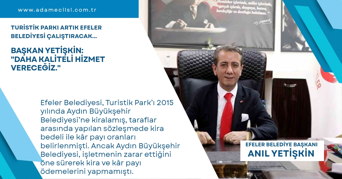 Tags: Anıl yetişkinBAŞKAN YETİŞKİN: "DAHA KALİTELİ HİZMET VERECEĞİZ."EfelerEfeler belediyesiTURİSTİK PARKI ARTIK EFELER BELEDİYESİ ÇALIŞTIRACAK...