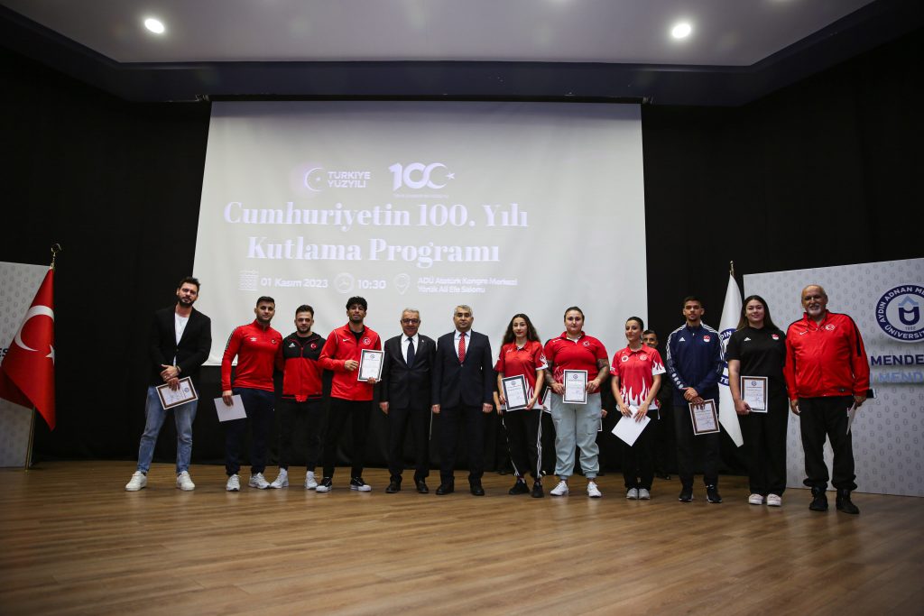 Üniversitemiz tarafından Cumhuriyetimizin kuruluşunun 100. yılı dolayısıyla düzenlenen “Cumhuriyetin 100. Yılı Kutlama Programı”, 1 Kasım 2023 tarihinde Atatürk Kongre Merkezi Yörük Ali Efe Salonu’nda gerçekleşti.